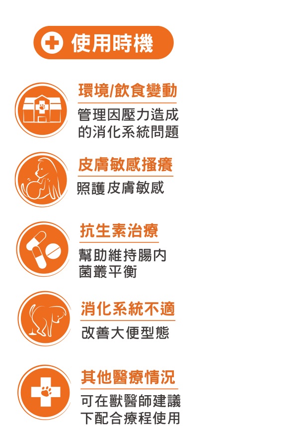 - 配合抗生素療程使用,幫助腸內菌叢平衡