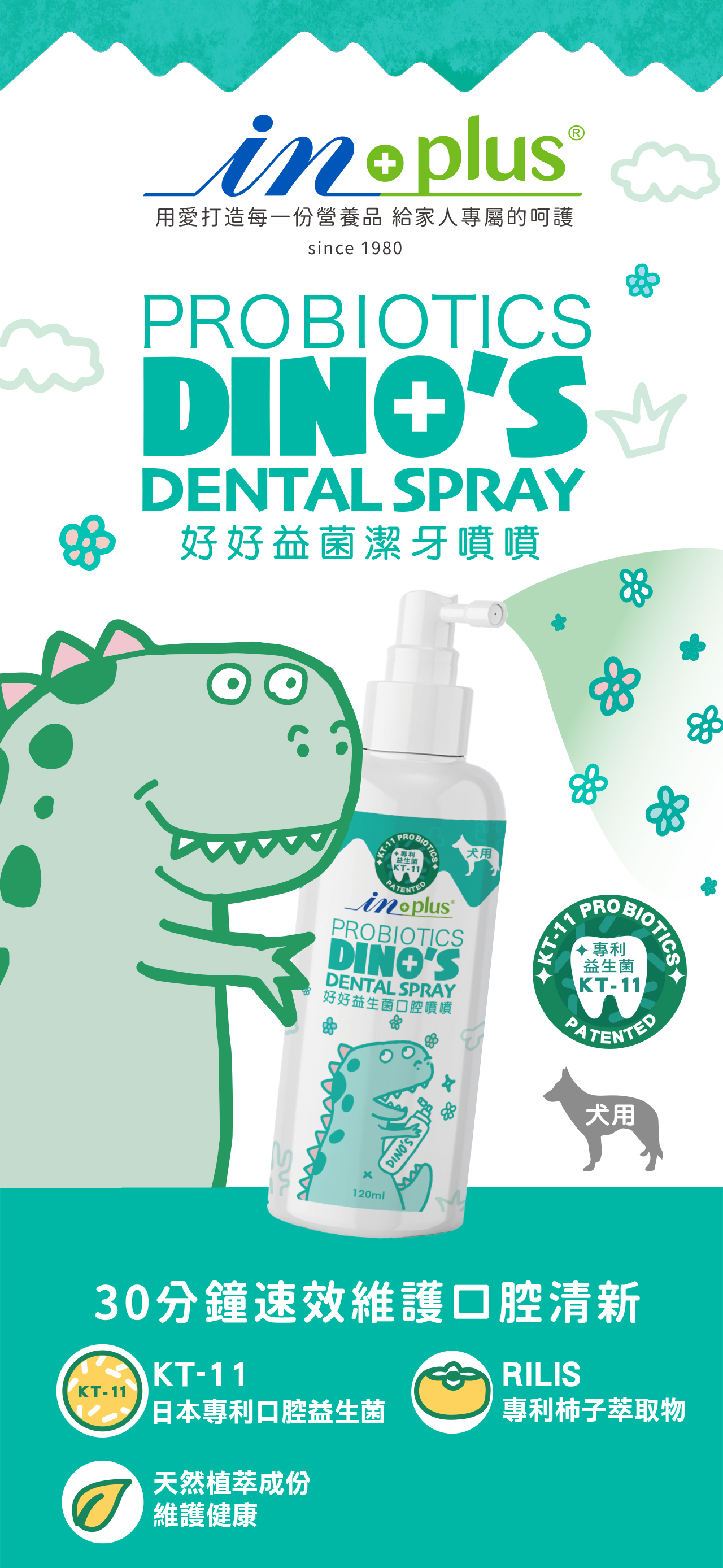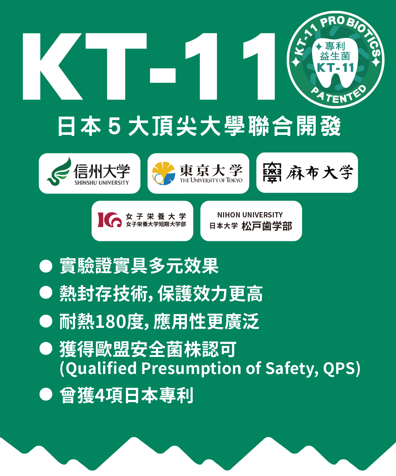 - 好菌:日本KT-11 專利口腔益生菌,臨床證實有效維護口腔牙齦健康