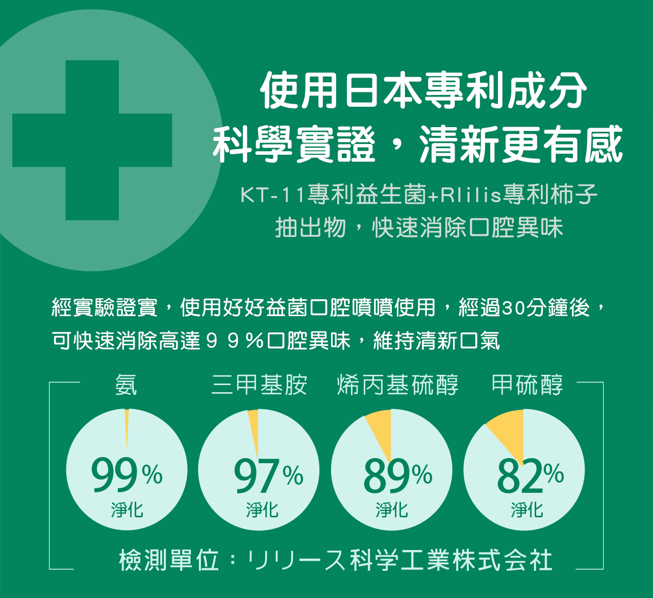 - 好口氣:Rilis日本專利柿子萃取物,有效分解異味分子,常保口氣清新