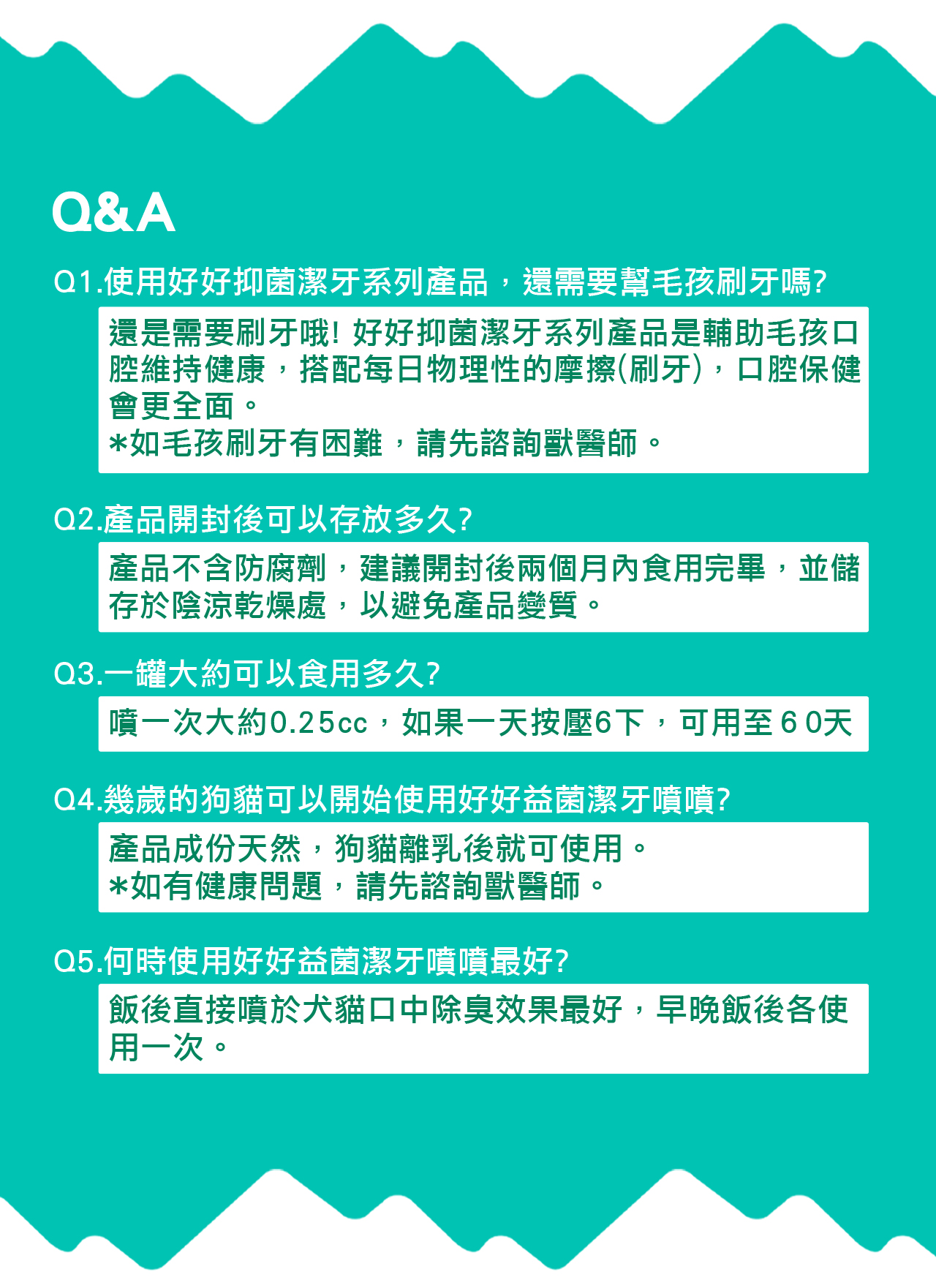 實驗證實使用好好益菌潔牙噴噴,30分鐘內可消除高達99%口腔異味,維持口氣清新。 日本KT-11專利口腔益生菌+日本Rilis專利柿子萃取物協同作用快速有效讓口氣清新;綠茶多酚及甘草萃取物,天然抗氧化及輔助口腔護理。益菌+天然植萃成分,溫和不刺激,天天使用也很放心,輕鬆維護狗狗口腔健康。